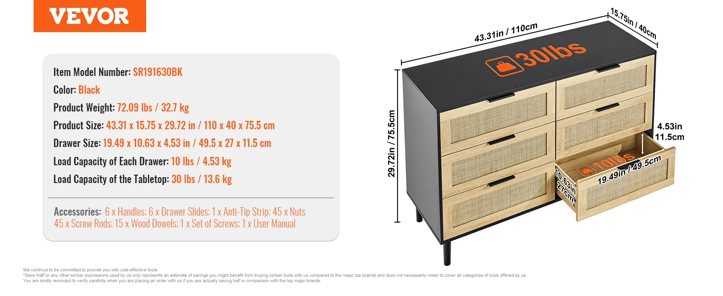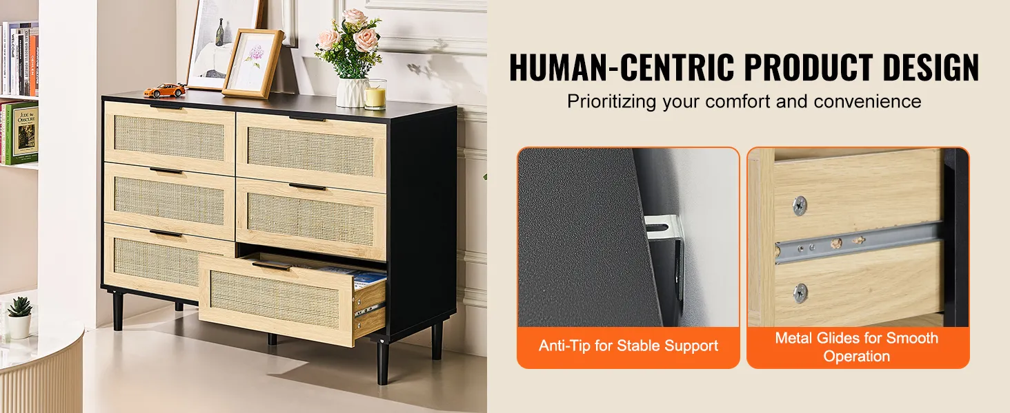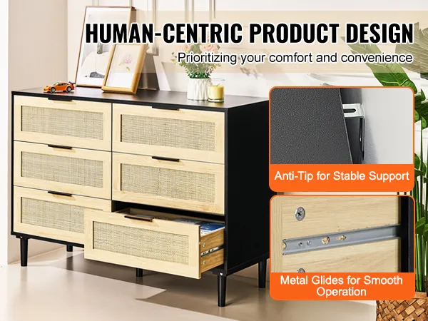 Het is ontworpen voor uw comfort. Het kantelbeveiligingssysteem zorgt voor een veilige stand en de metalen glijders op elke lade zorgen voor een soepele en stille opening en sluiting, waardoor het een gebruiksvriendelijke toevoeging aan uw huis is.