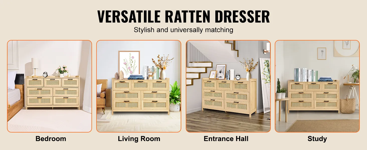 Versatile Charm: More than just a dressing table, this rattan dresser can double as a nightstand, TV stand, clothes organizer, or entryway table. It’s a fantastic way to add a touch of elegance to any room!