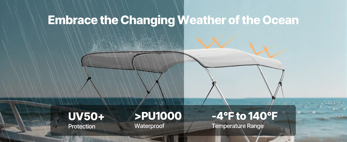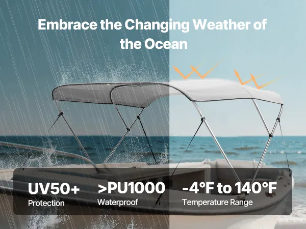 Deze bootluifel is gemaakt van 600D dik, geverfd polyester met een hoge dichtheid, is lichtbestendig en biedt bescherming tegen de zon. Blijf de hele dag koel en beschermd tegen zon en regen.