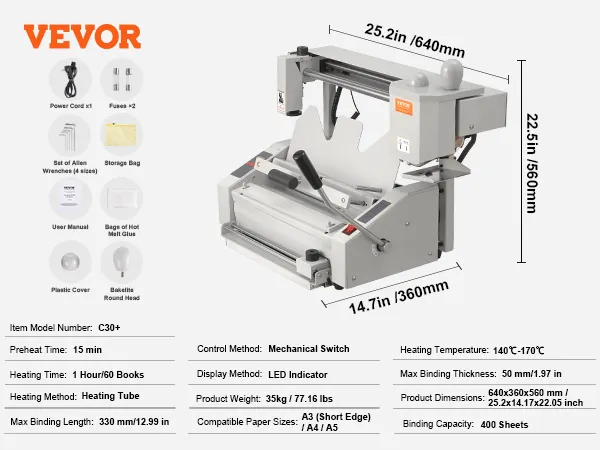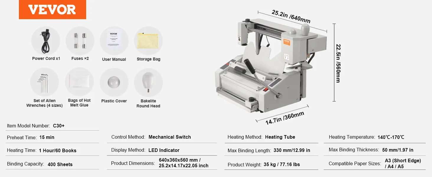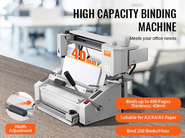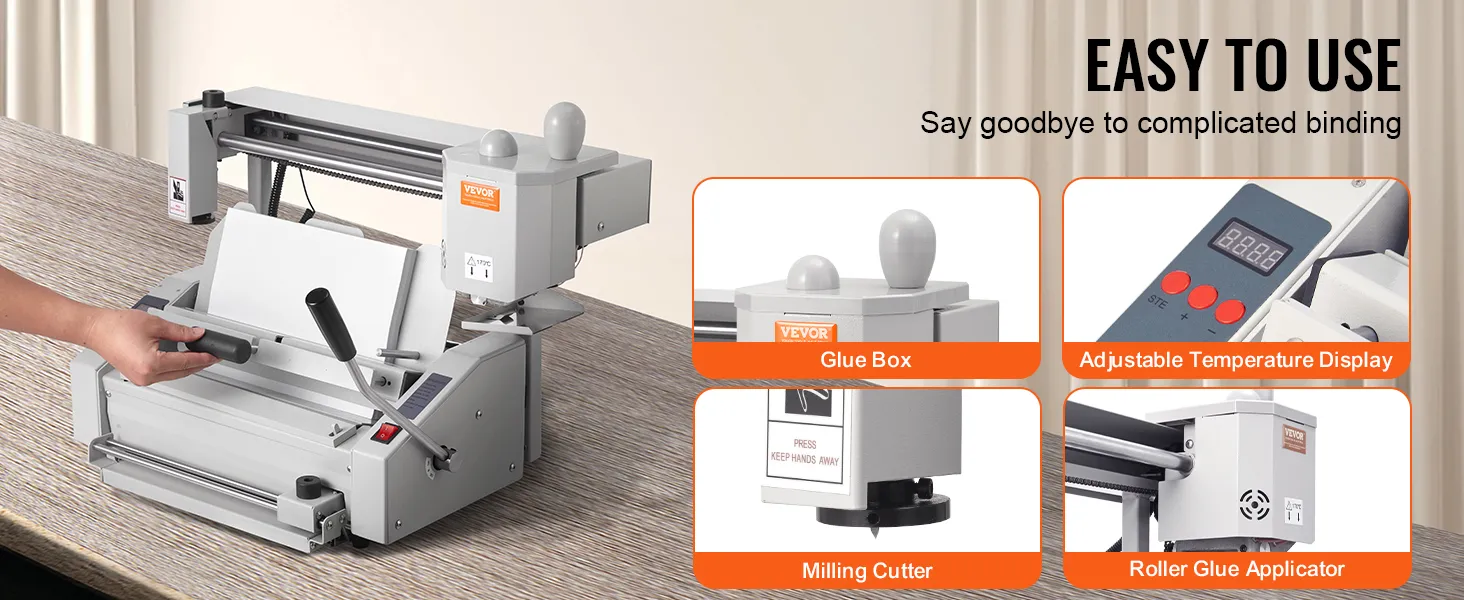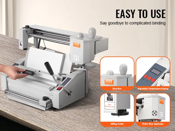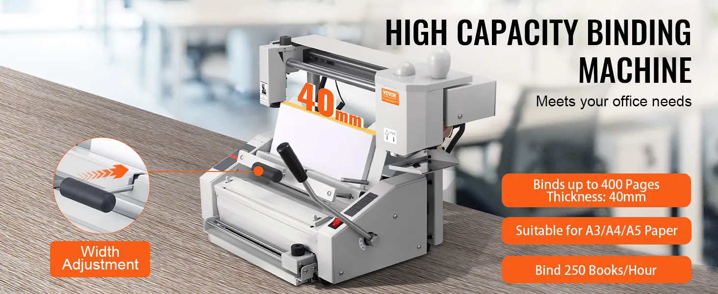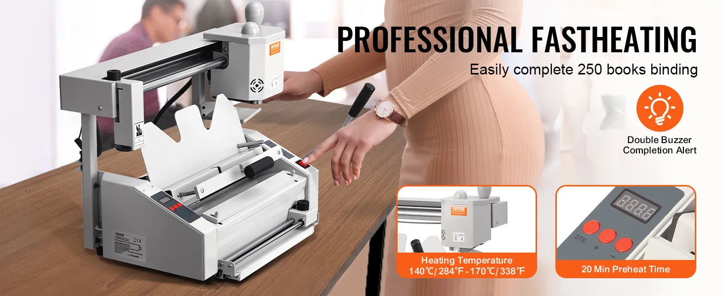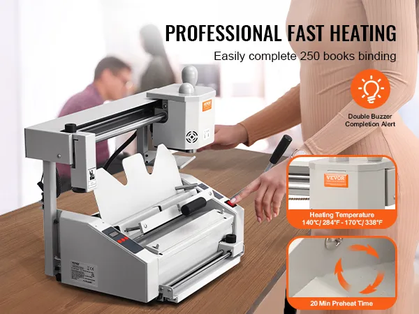 Say goodbye to complexity! VEVOR thermal book binder easily adjusts sizes and binds 160 books an hour effortlessly.