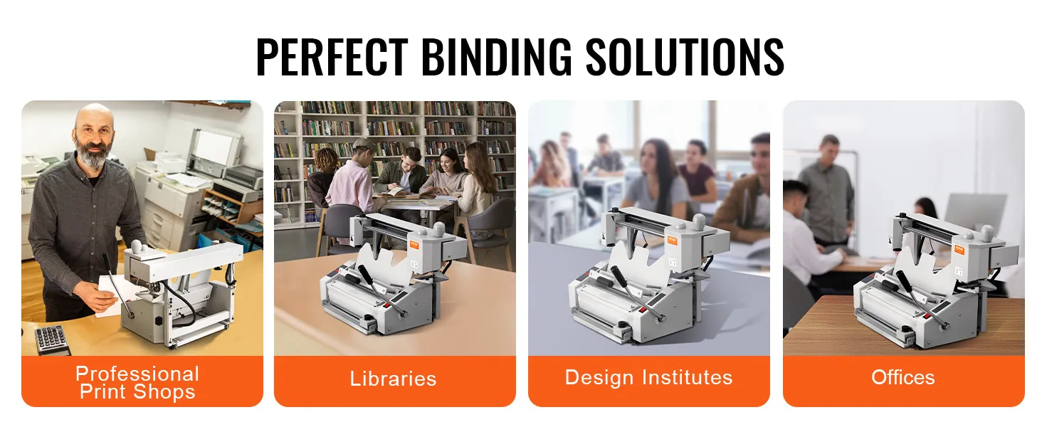 Wide Application: Suitable for professional printing and copying shops, libraries, design institutes, and offices, this document binder machine meets all your document binding needs in various settings. Whether for personal office use or professional institutions, you'll find the perfect binding solution.
