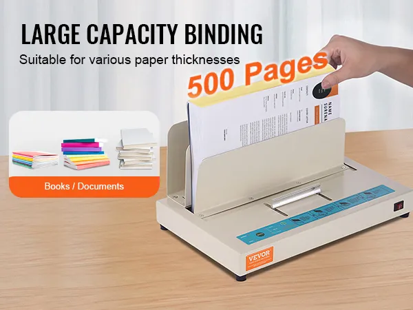 Grote inbindcapaciteit: voldoet aan uw kantoorbehoeften! Bind tot 500 vellen tot 50 mm dik in één keer. Deze thermische boekbinder is compatibel met de papierformaten A3, A4 en A5, voldoet aan verschillende behoeften op het gebied van documentbinden en verhoogt de werkefficiëntie.