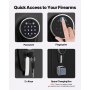 Slim slot: Het 9-cijferige touchscreen-toetsenbord en de vingerafdrukherkenning zorgen voor snelle toegang. Het wachtwoord kan worden ingesteld tussen 3 en 12 cijfers en het slot is voorzien van een automatische vergrendelingsfunctie voor extra veiligheid. Een noodsleutel en een reserve-oplaadcase voor het ontgrendelen wanneer de batterij leeg is, worden ook meegeleverd. (Let op: Batterijen zijn niet inbegrepen; u heeft 4 AA-batterijen nodig, die apart moeten worden aangeschaft.)