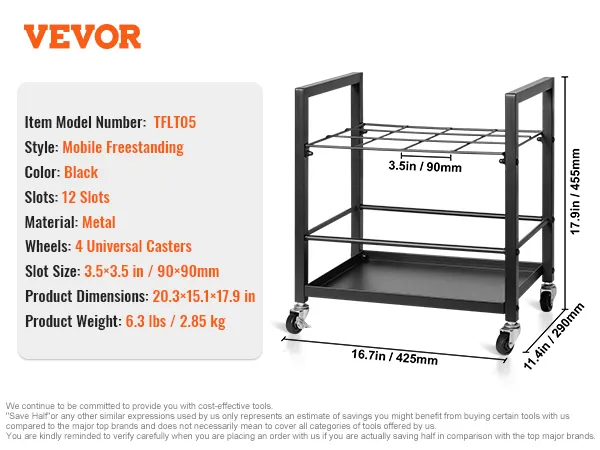 Het VEVOR blauwdruk opbergrek biedt 12 sleuven, elk 3,5"x3,5". Dit ontwerp zorgt ervoor dat uw blauwdrukken, bouwplannen en documenten georganiseerd blijven. De perfect gedimensioneerde sleuven houden uw bestanden stevig vast. De verticale rolopslag maximaliseert de ruimte, waardoor u eenvoudig toegang hebt tot de documenten die u nodig hebt. Dit efficiënte ontwerp helpt u uw bestanden effectiever te beheren. Deze compacte maat voorkomt dat documenten verschuiven, zodat ze netjes en eenvoudig te vinden blijven. Of het nu voor thuis- of professioneel gebruik is, dit rek voldoet perfect aan uw basisbehoeften voor het opslaan van bestanden.