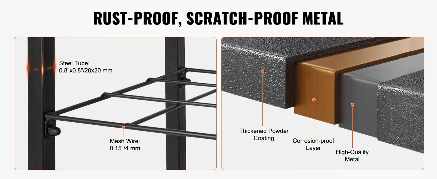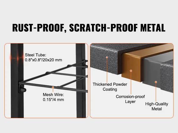 Het verdikte metaal heeft een roestwerende poedercoating. De draaddiameter van 4 mm ondersteunt een laadvermogen van 66 lb. Deze constructie zorgt voor langdurig gebruik en slijtvastheid. Gladde, gepolijste randen voorkomen handletsel en schade aan documenten. Roestwerende coating behoudt het uiterlijk en de integriteit van het rek, zelfs in veeleisende omgevingen. Duurzame constructie beschermt ook uw waardevolle documenten tegen schade. Dit robuuste ontwerp garandeert dat uw investering lang meegaat en uw bestanden veilig blijven.