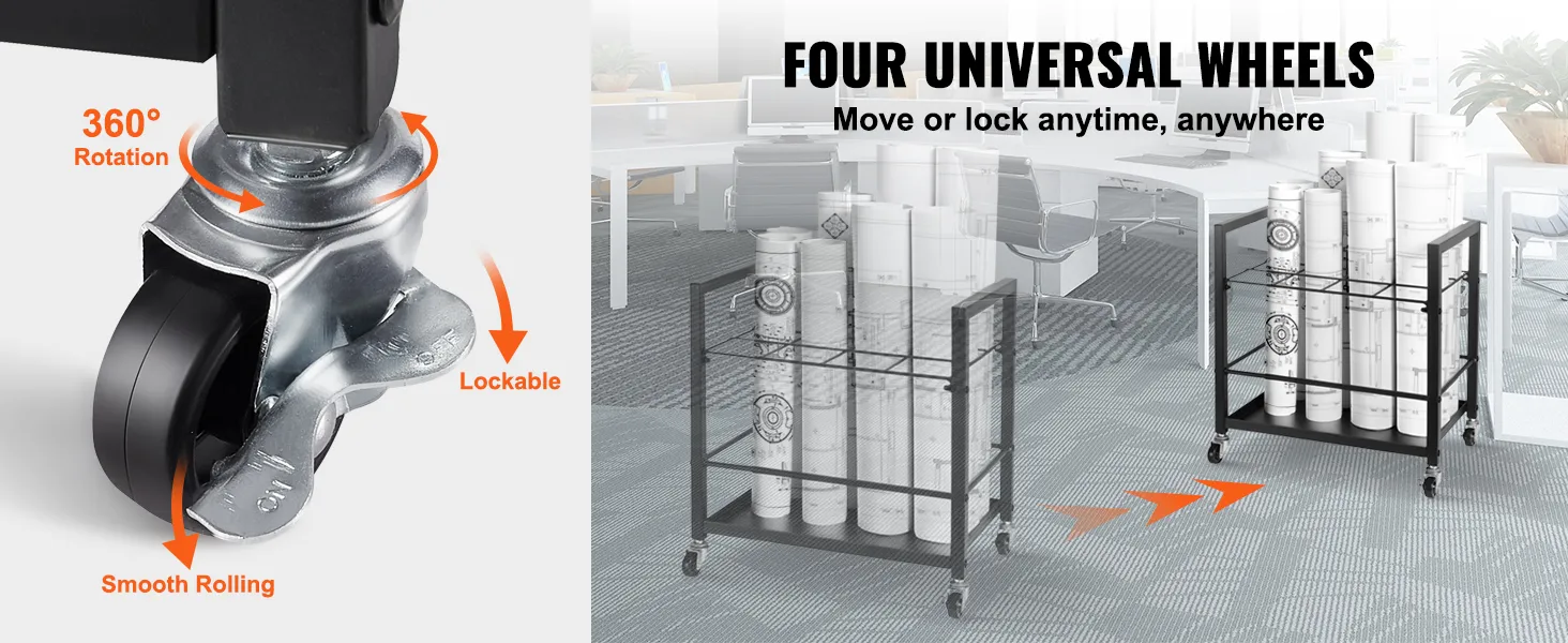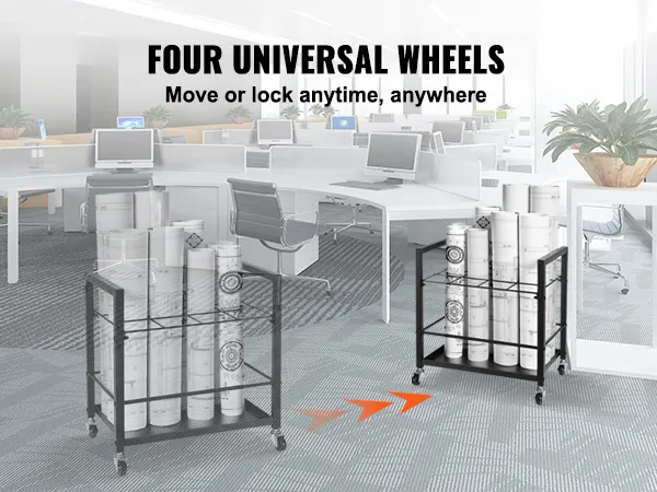 In de VEVOR Blueprint opbergorganizer zitten vier zwenkwielen. Twee van deze zwenkwielen zorgen voor veilig en stabiel transport. U kunt het rek eenvoudig verplaatsen naar uw kantoor, studio of werkplek. De afsluitbare krikken zorgen ervoor dat de documenten veilig blijven tijdens het transport. Deze mobiliteitsfunctie vergroot het gebruiksgemak van het rek. We ontwerpen deze houders voor verschillende vloertypen, wat zorgt voor een soepele beweging. Mobiliteit maakt het eenvoudig om toegang te krijgen tot uw documenten waar u ze ook nodig hebt.