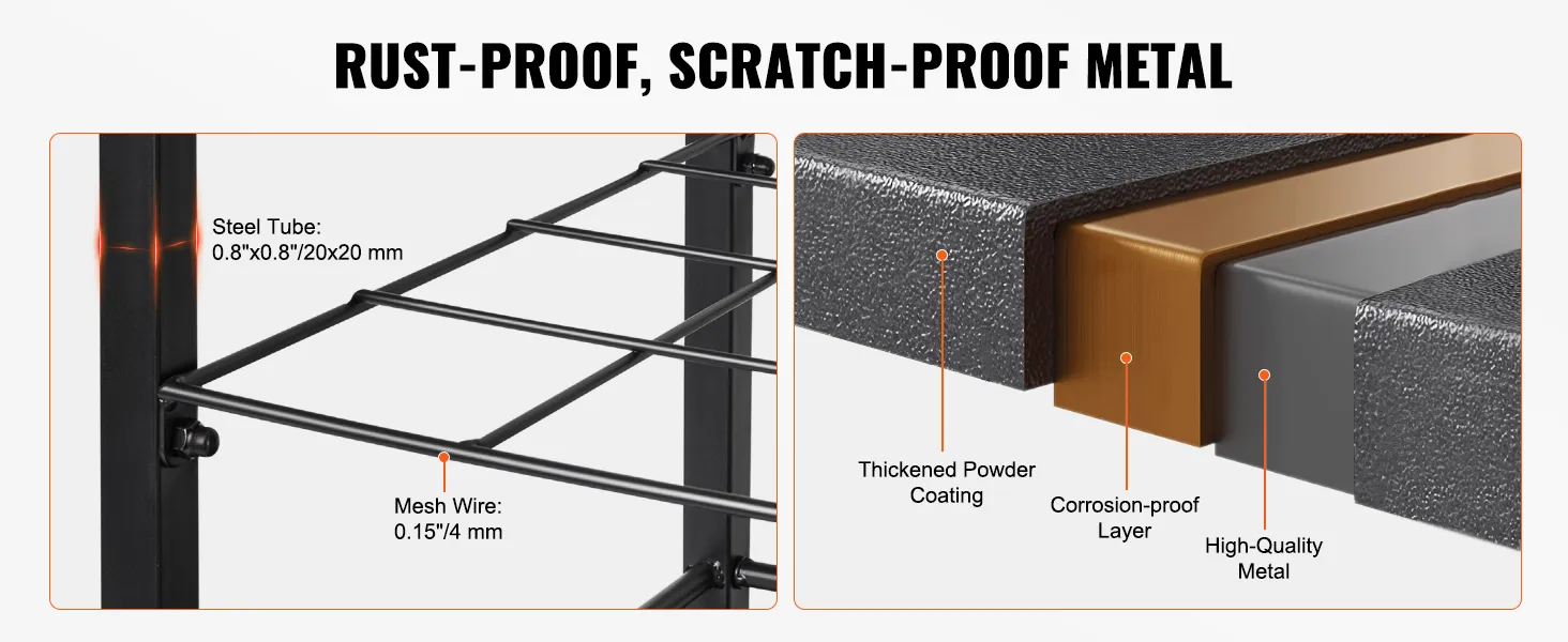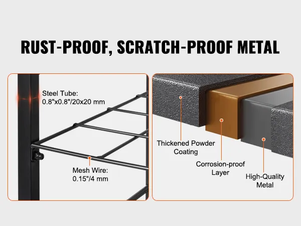 We hebben het VEVOR-blauwdrukopslagrek gemaakt van verdikt metaal. Dit maakt het sterk en duurzaam. De roestwerende poedercoating beschermt het tegen corrosie. De draaddiameter van 4,4 mm vergroot de draagkracht van het rek. Het kan tot 66 lbs aan documenten bevatten. Gladde, gepolijste randen voorkomen verwondingen aan de handen. Ze beschermen documenten ook tegen beschadiging. Dit zorgt ervoor dat uw waardevolle blauwdrukken in uitstekende staat blijven. De metalen constructie draagt bij aan de levensduur van de plank. We hebben het gebouwd om dagelijks gebruik in drukke omgevingen te weerstaan. Dit robuuste ontwerp biedt gemoedsrust. U kunt er dus op vertrouwen dat het VEVOR-rek uw documenten veilig opbergt.