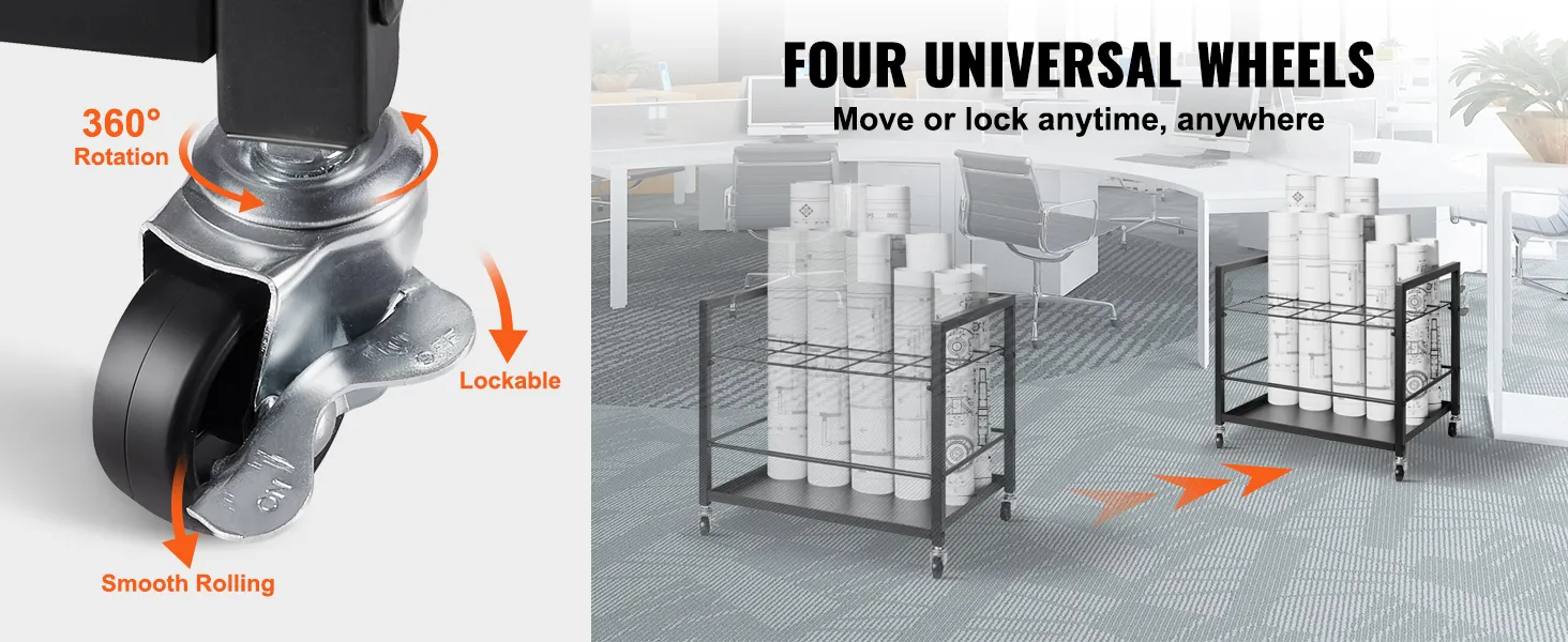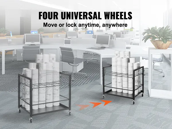 Het VEVOR blueprint opbergrek biedt eenvoudige mobiliteit. Het heeft vier zwenkwielen voor soepele beweging. Twee van de verplaatsers zijn vergrendelbaar. Dit zorgt voor stabiliteit wanneer nodig. U kunt het rek eenvoudig verplaatsen naar uw kantoor of werkplek. Het houdt uw documenten veilig tijdens het transport. Deze functie verbetert de draagbaarheid en het gemak. Het is ideaal voor degenen die regelmatig documenten moeten verplaatsen. De vergrendelbare krikken bieden een stabiele basis wanneer u stopt. Dat betekent dat uw bestanden georganiseerd en veilig blijven. Mobiliteit voegt flexibiliteit toe aan de opslagoplossing.