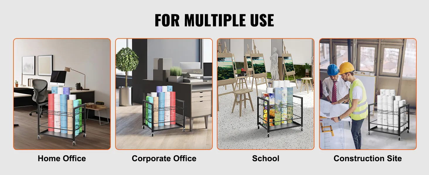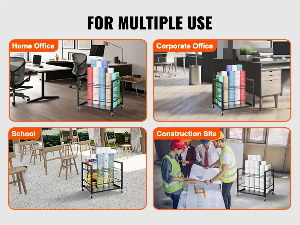 Het VEVOR blauwdruk opbergrek is veelzijdig. Het is perfect voor kantoren, studio's en werkplekken. U kunt blauwdrukken, architectonisch papier, kaarten, technische documenten en ook inpakpapier opbergen. De 20-slot blauwdrukhouder biedt voldoende opbergruimte voor verschillende documenttypen. Ons compacte ontwerp past goed in kleine ruimtes. Dit maakt het eenvoudig om verschillende bestandstypen te verwerken. Het rek is aan te raden voor drukke omgevingen. Dit rek biedt inderdaad een moeiteloze houdbaarheid dankzij zijn duurzaamheid en mobiliteit. Daarom helpt het een georganiseerde en efficiënte werkruimte te behouden. Deze veelzijdige stellingoplossing voldoet effectief aan uiteenlopende behoeften.