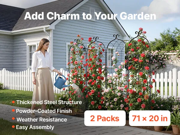 Zeg vaarwel tegen een rommelige tuin. Deze set van twee stalen rozenrekken, met hun subtiel gebogen ontwerp, geeft structuur en charme aan uw tuin en past harmonieus in elk landschap. Het biedt voldoende steun voor bloemen, klimplanten en groenten om langs te groeien.