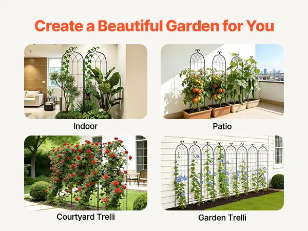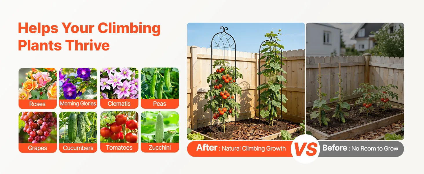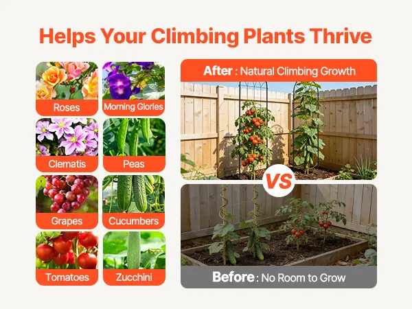 Dit klimrek voor tuinbloemen en rozen is speciaal ontworpen voor diverse klimplanten en hangende groenten, en biedt ze voldoende ruimte voor een sterke, rechtopstaande groei. Ideaal voor klimrozen, klimop, clematis, jasmijn, winde, komkommers, tomaten, erwten en nog veel meer.