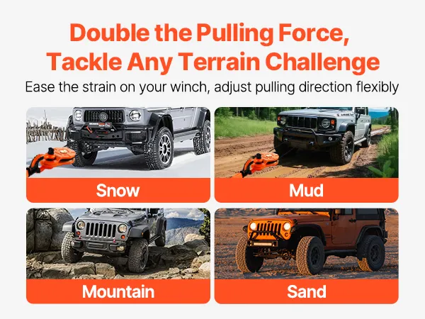 Double Pulling Power: Doubling the winch's pulling power, this snatch block pulley reduces strain on your winch and maximizes its strength. You can change the direction of the force with ease, making it simple to get your vehicle unstuck from tough terrains like snow, mud, sand, and ice.