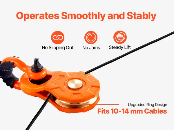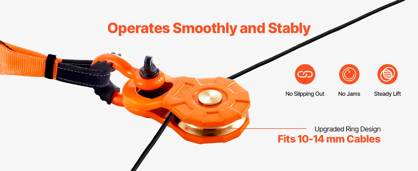 The pulley block features a grooved pulley to keep the rope in place. This design helps avoid uneven load distribution and slippage, ensuring your recovery process stays smooth and reliable with every use.