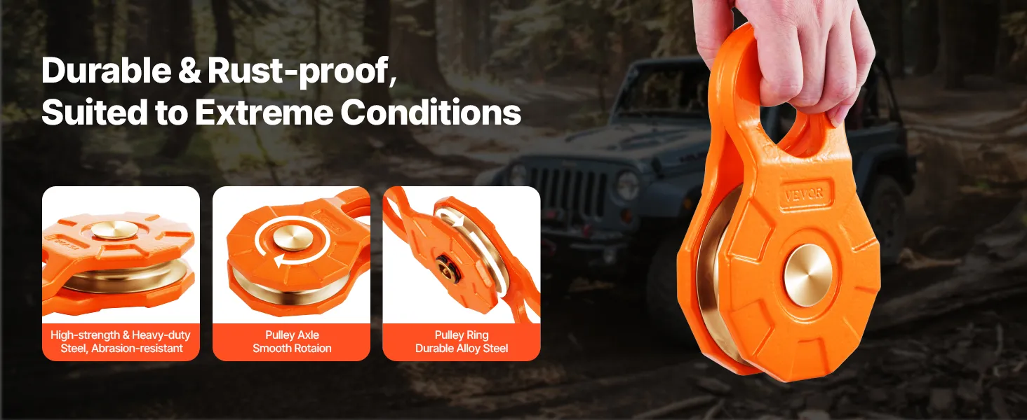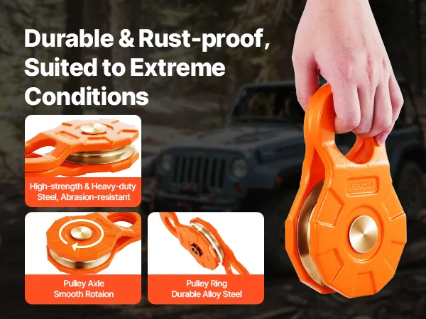 Rust-Resistant Durability: Made from high-quality, heavy-duty steel, this winch snatch block features a corrosion-resistant coating to withstand harsh conditions. Built to last, it ensures exceptional performance even in extreme weather or rough environments, keeping your gear reliable for any adventure.