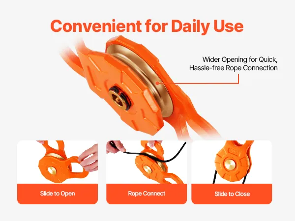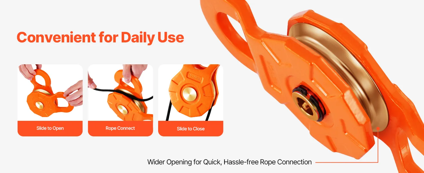 Easy Assembly: Simply slide open the winch pulley side panel to quickly connect your rope; no complicated disassembly is needed. This will save time and effort while keeping operations smooth. You can easily adjust or inspect the rope as you work for a seamless experience.