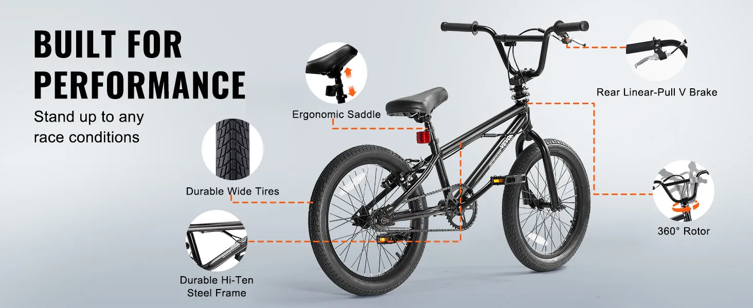 Built for Tumble Play: Equipped with a 360°rotor, this freestyle BMX bike offers excellent control for performing hops and tricks. It’s designed to handle high-energy play and challenging stunts.