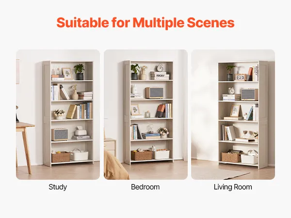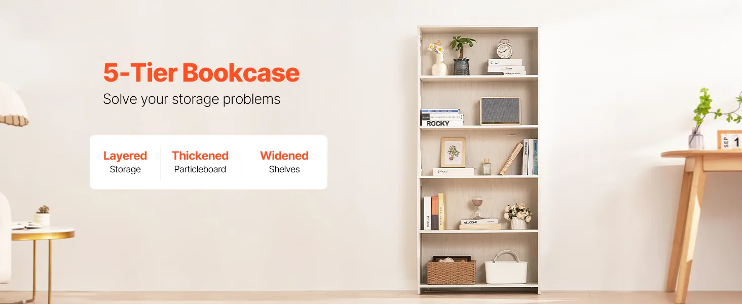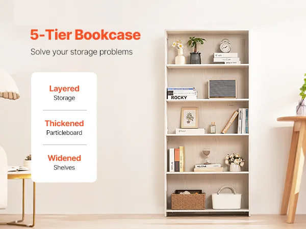 This 5-tier bookcase features a vertical design to maximize space, making it perfect for corners in your living room, study, or bedroom.