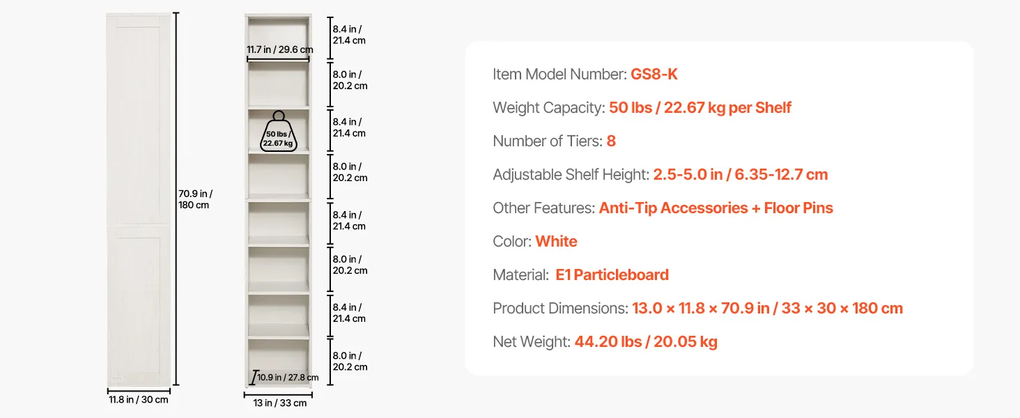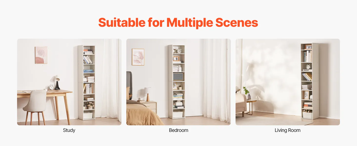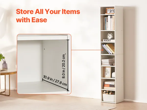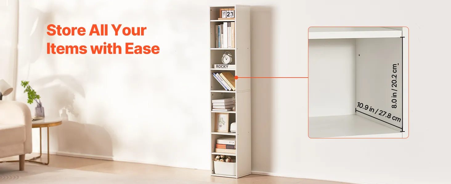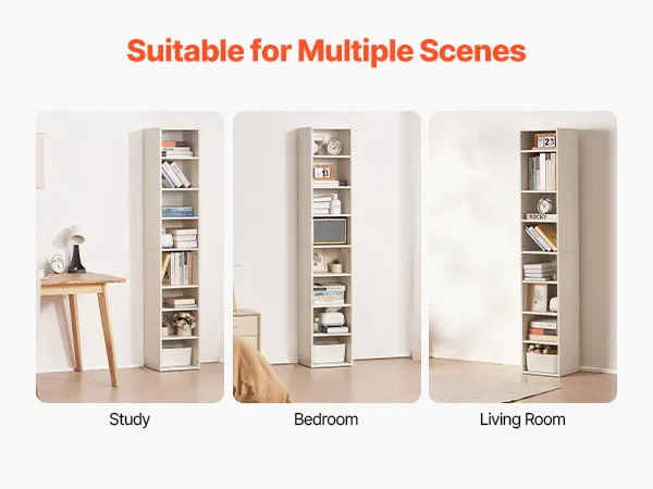 This 8-tier bookcase features a vertical design to maximize space, making it perfect for corners in your living room, study, or bedroom.