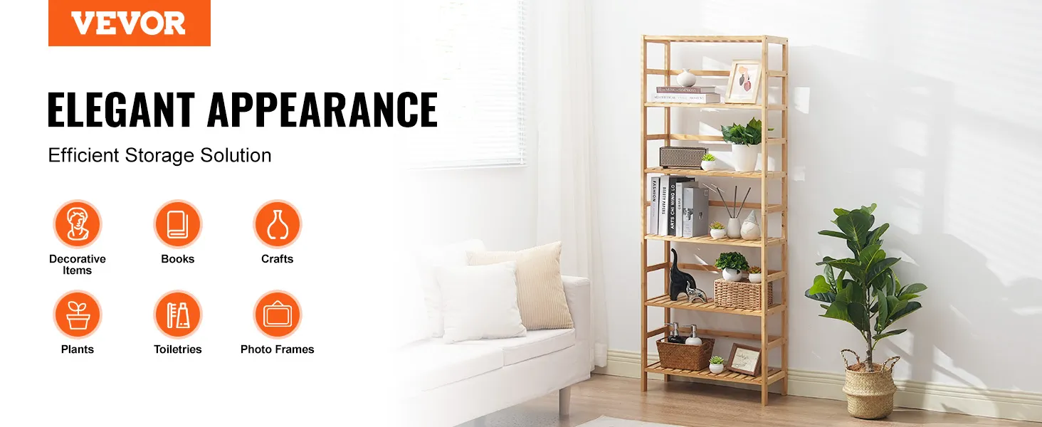 Elegant uiterlijk: het minimalistische ontwerp beschikt over 6 open planken die op slimme wijze het gebruik van de ruimte maximaliseren. Hij past naadloos in verschillende woonstijlen en biedt een elegante plek voor je boeken, decoraties of andere opbergbehoeften.
