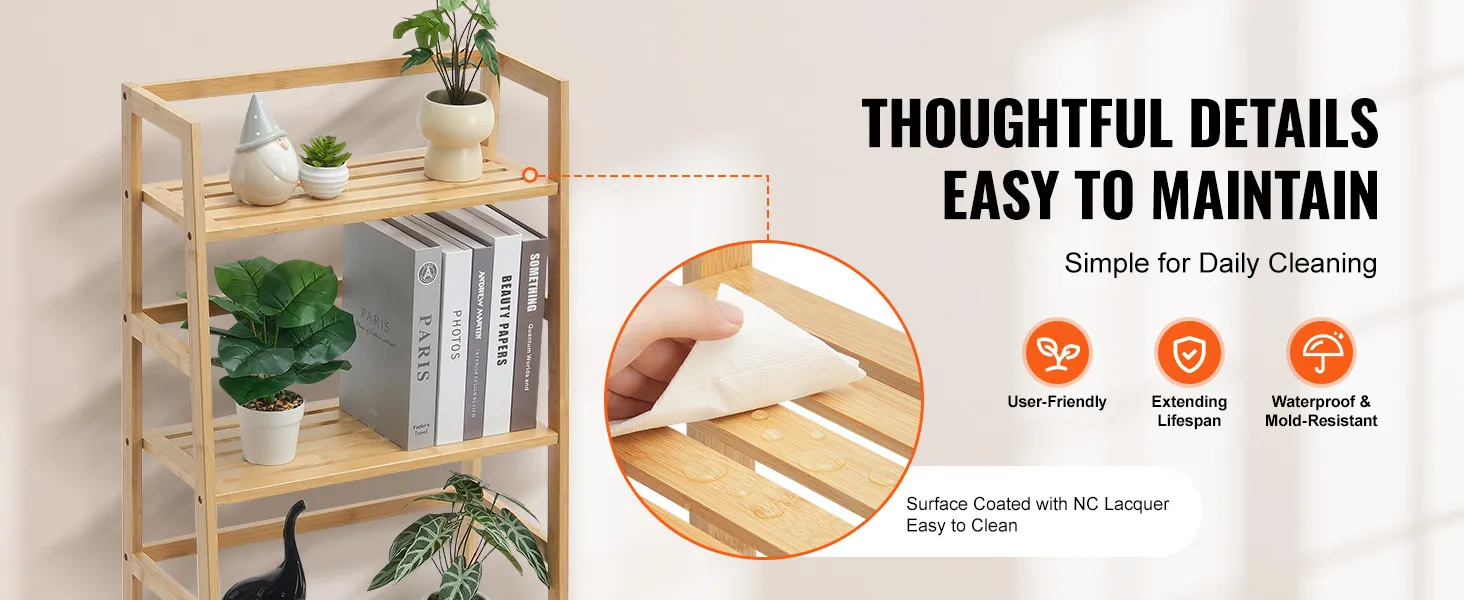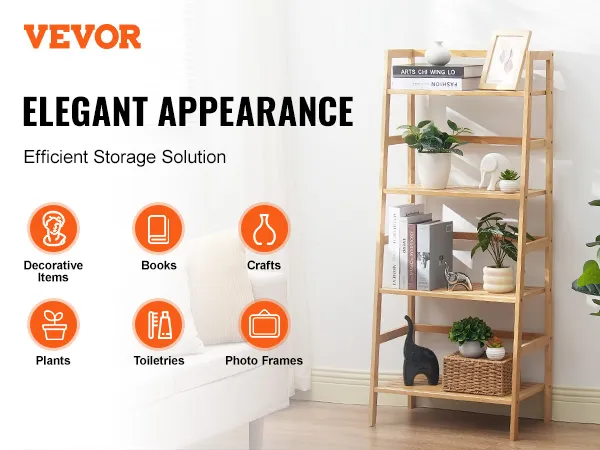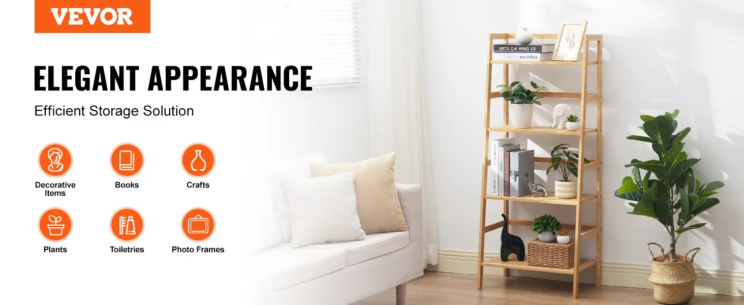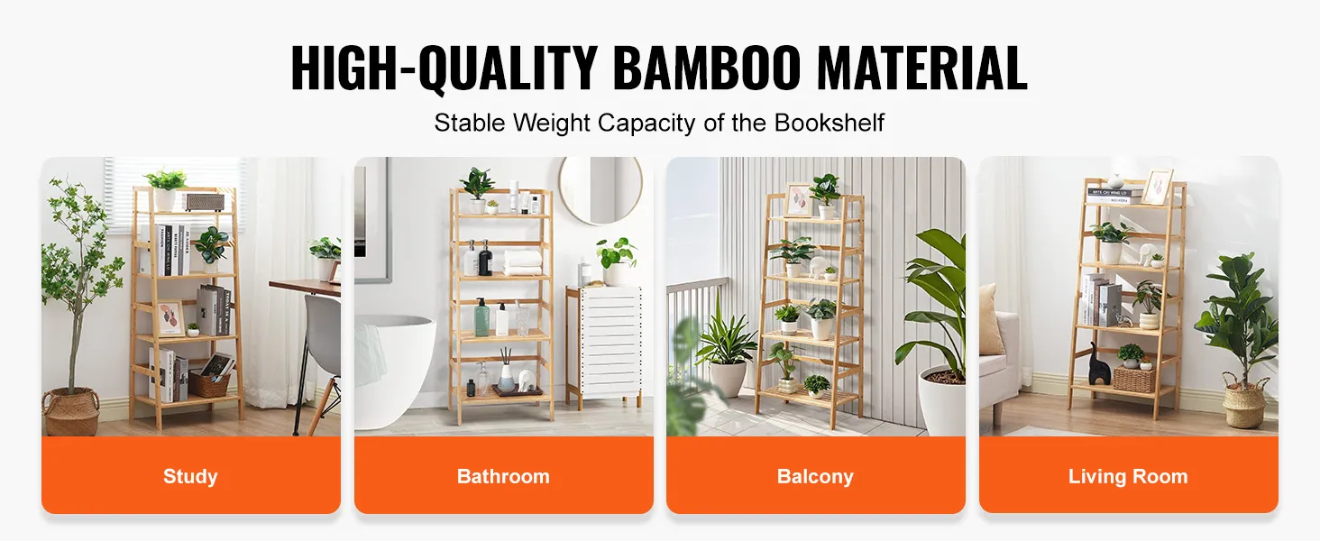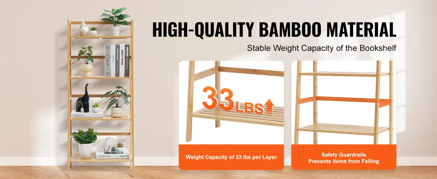 Stevig en duurzaam: deze ladderboekenkast is gemaakt van 100% puur bamboe en is niet alleen stevig en duurzaam, maar elke plank kan ook maximaal 15 kg dragen, waardoor uw waardevolle spullen veilig blijven en de tand des tijds kunnen doorstaan.