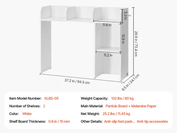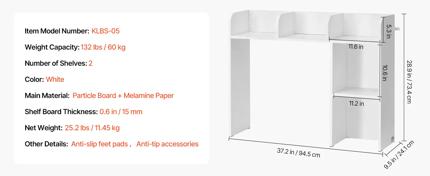 Sturdy and Durable: Our desktop hutch excels in load-bearing capacity and stability. The shelves, made from 0.6-inch thick particleboard, can support up to 132 lbs / 60 kg, providing strong support for all kinds of books. The smooth surface is waterproof, scratch-resistant, and easy to clean, making it ideal for busy study or work environments.