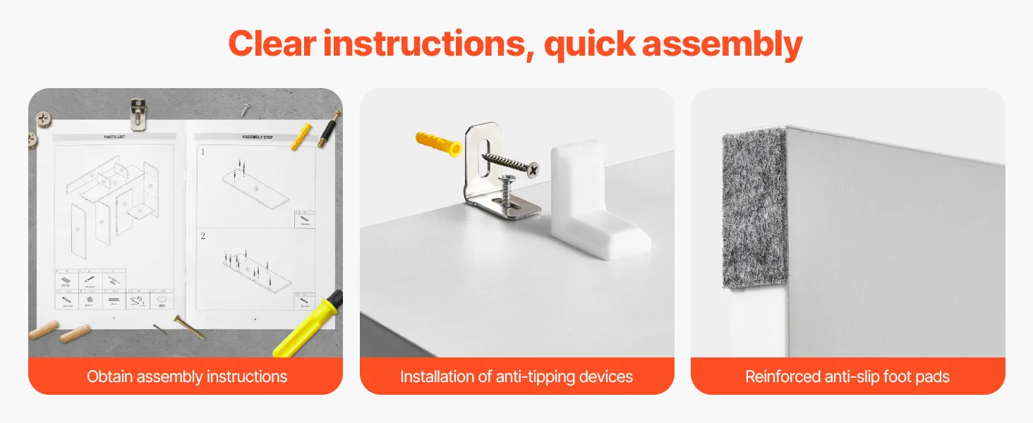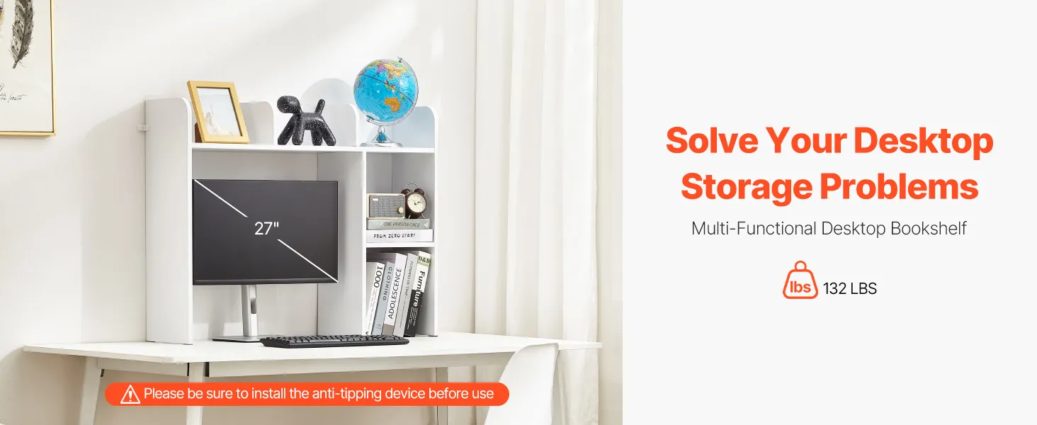Stable and Secure: We've added an anti-tip device so you can secure the desk hutch to the wall. Be sure to install the anti-tip device before use for extra stability and security. The H-shaped structure and non-slip foot pads enhance overall stability, eliminating the risk of tipping over and preventing scratches on your desk.
