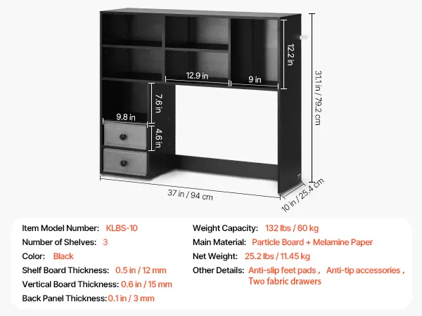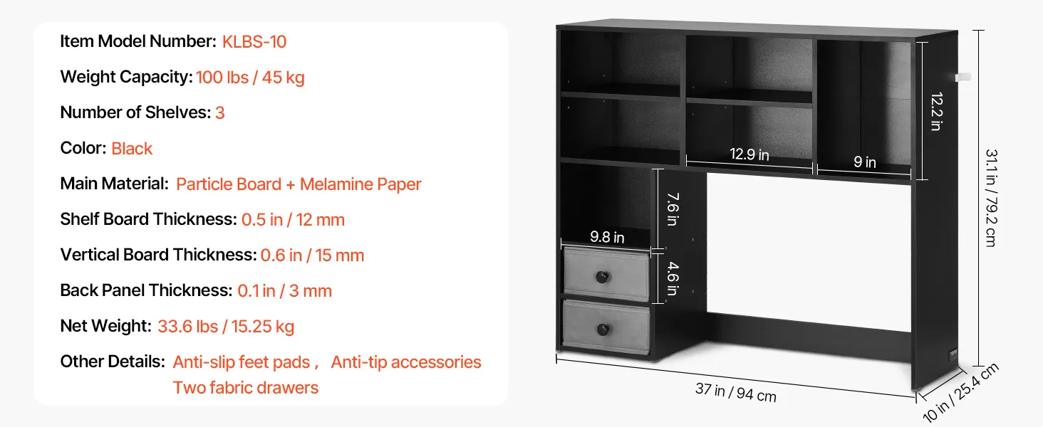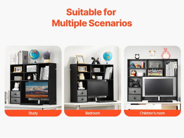 Sturdy and Durable: Our desktop hutch excels in load-bearing capacity and stability. The shelves, made from 0.5-inch thick particleboard, can support up to 100 lbs / 45 kg, providing strong support for all kinds of books. The smooth surface is waterproof, scratch-resistant, and easy to clean, making it ideal for busy study or work environments.