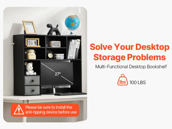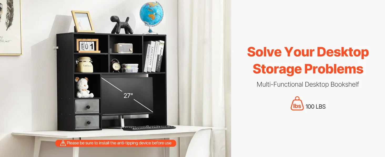 Stable and Secure: We've added an anti-tip device so you can secure the desk hutch to the wall. Be sure to install the anti-tip device before use for extra stability and security. The H-shaped structure and non-slip foot pads enhance overall stability, eliminating the risk of tipping over and preventing scratches on your desk.