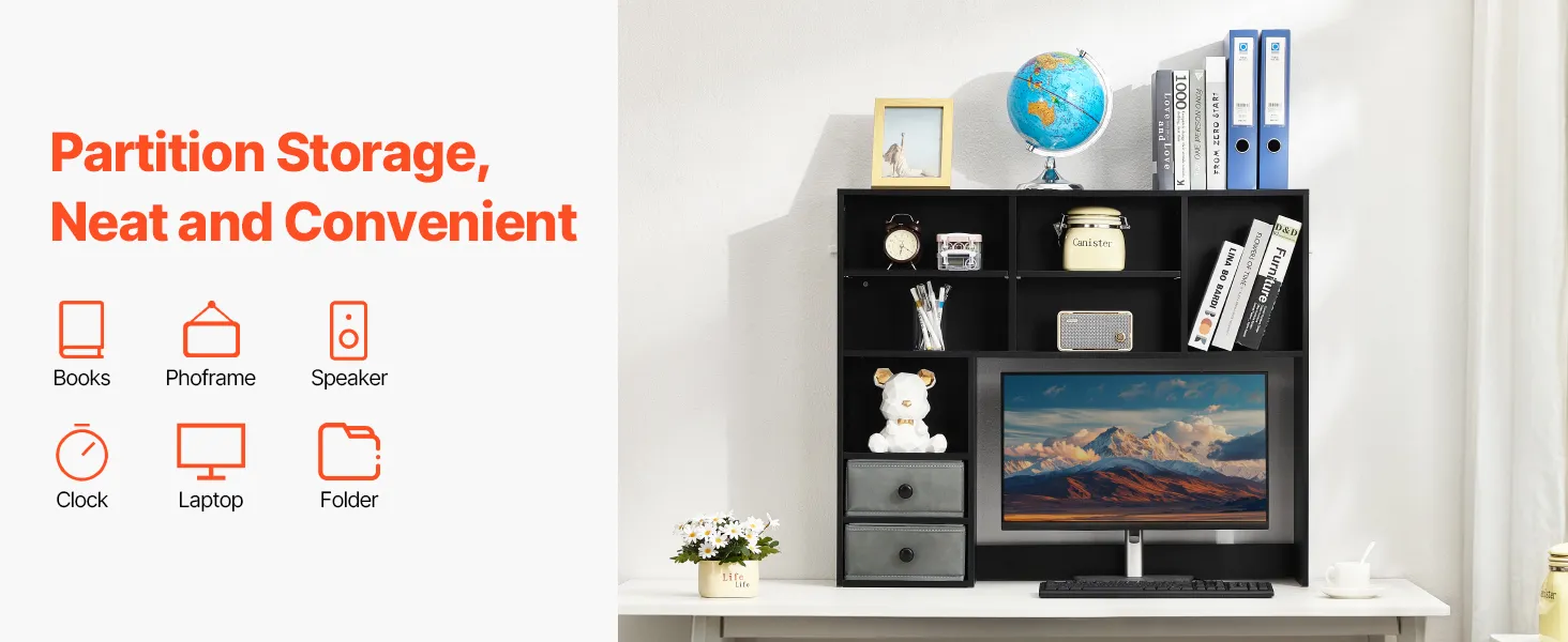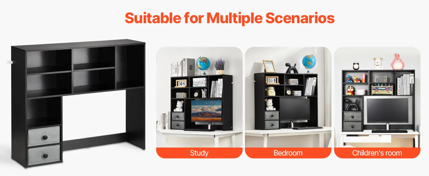 Equipped with multiple compartments for organizing books, office supplies, and more, this desktop hutch dorm helps create a tidy workspace and boosts productivity.