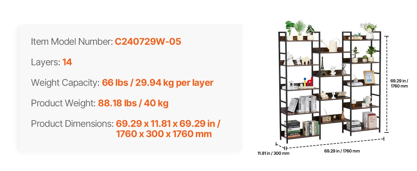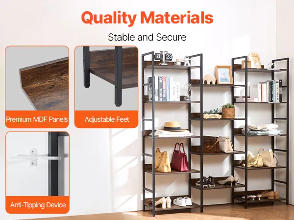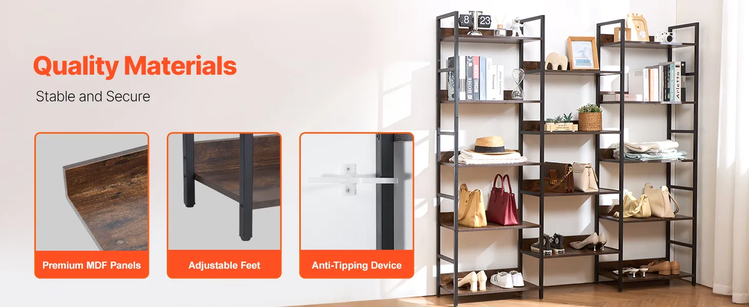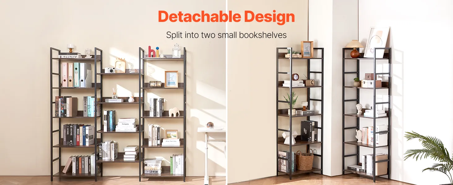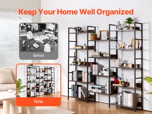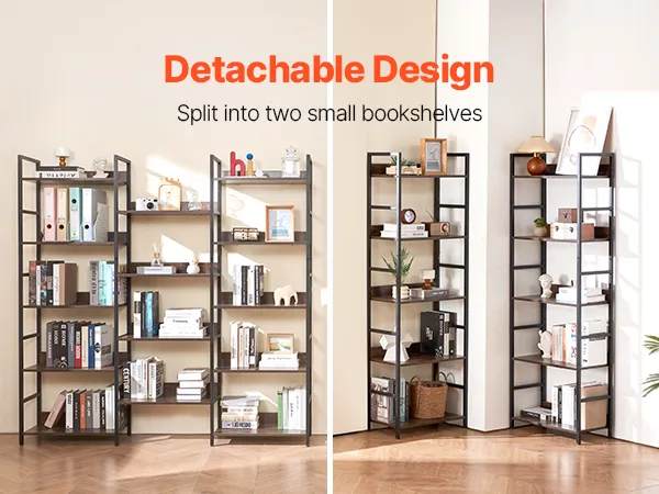 Effortless Assembly: Designed for simplicity, this industrial bookshelf includes detailed illustrated instructions, making setup stress-free. It can also be disassembled into two smaller shelves based on your needs. An anti-tip device ensures extra stability and security, providing a reliable storage solution.