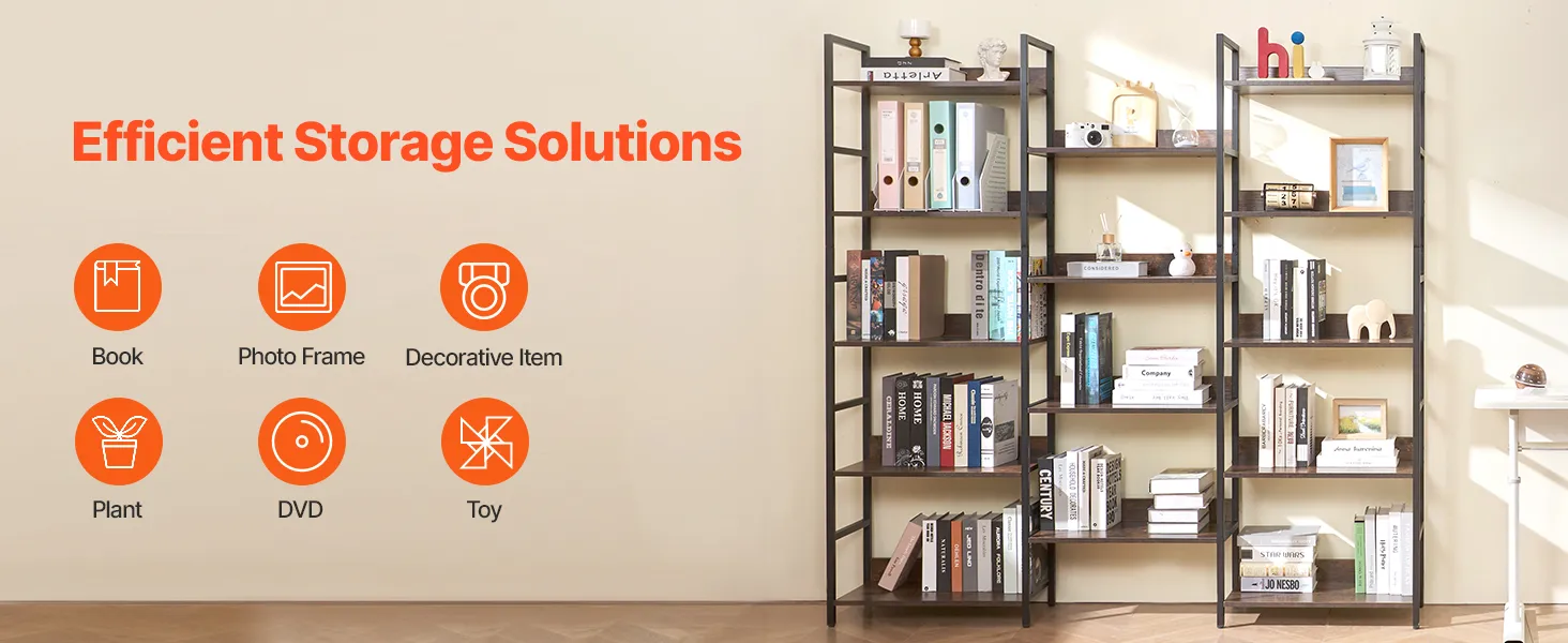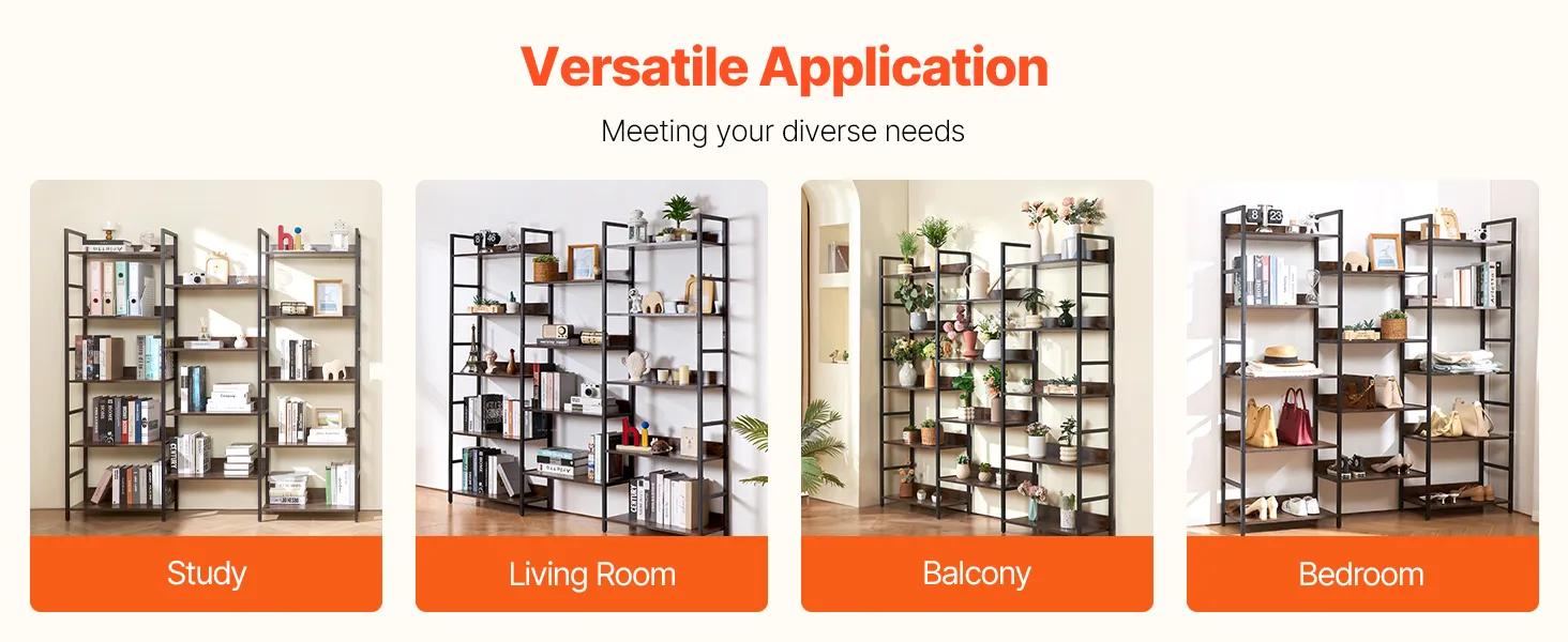 Sturdy and Durable: Built with a full metal support frame, this open bookshelf is not only robust and long-lasting but also supports up to 66 lbs per shelf, ensuring your valuables are securely stored, standing the test of time.