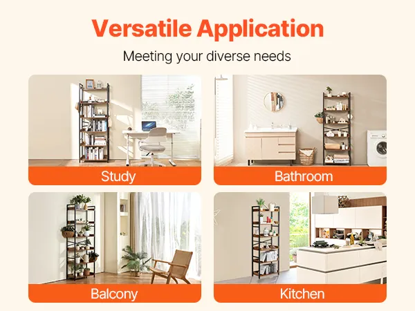 This metal bookshelf features a sleek, multi-tier design to maximize space while staying sturdy and stylish. It blends with various decor and works as a bookshelf, bathroom rack, or plant stand. Easy to assemble, it adds charm and order to any room!