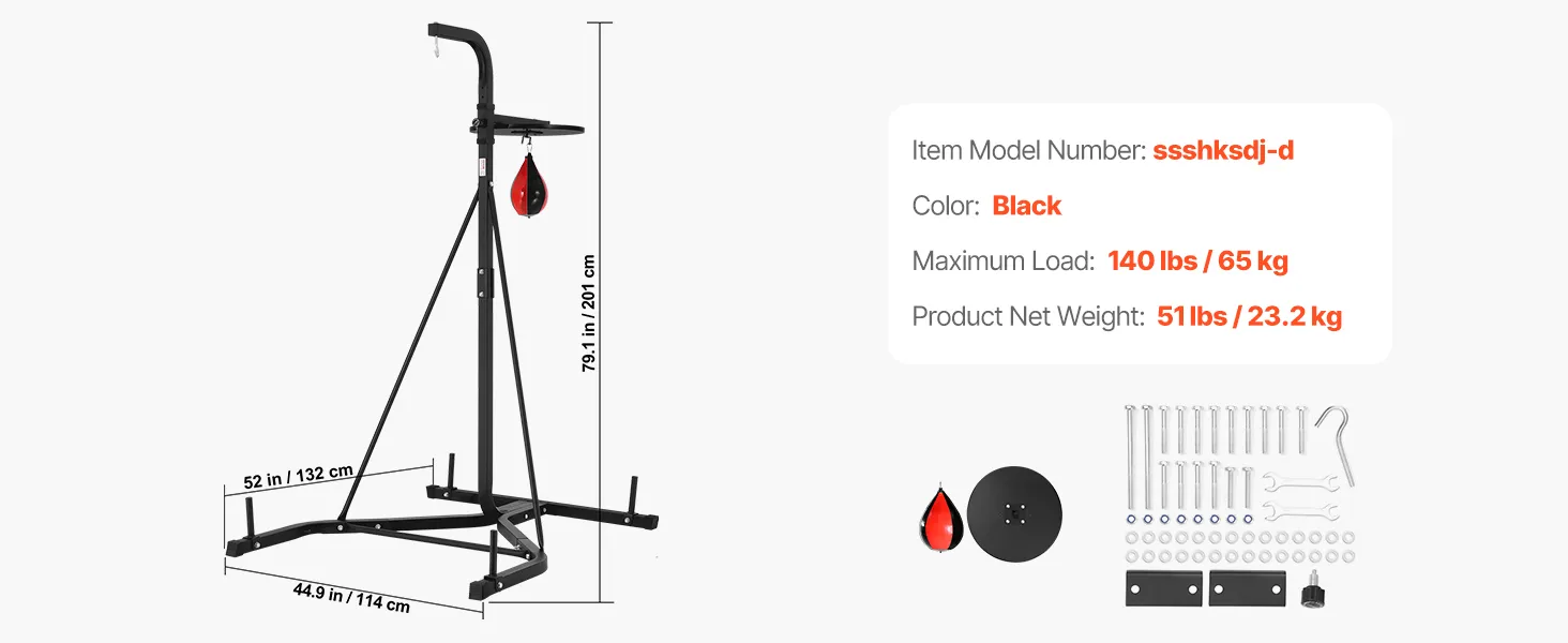 2-in-1 Functionality: Our sandbag rack accommodates both a punching bag and a speed bag. The robust hook can withstand a 140-pound punching bag, suitable for both speed and heavy bag training, making it the ideal companion for your boxing and martial arts workouts (Punching bag not included, sold separately)