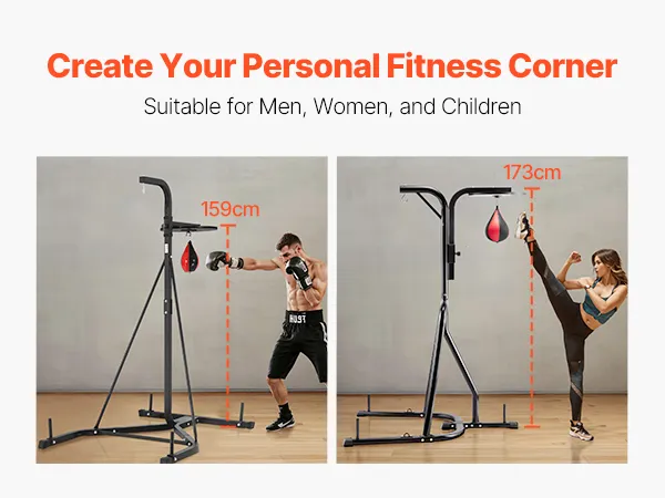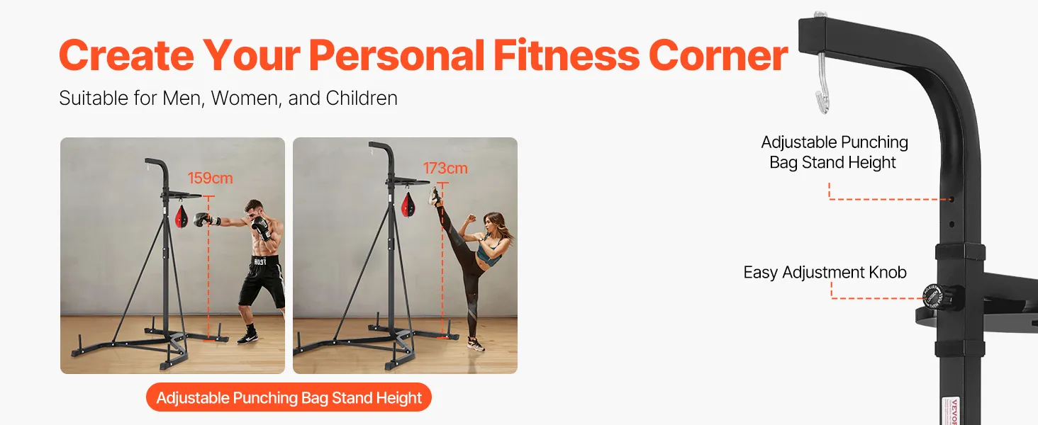 Adjustable Height: The height of the punching bag stand can be adjusted according to your training needs. The height can be adjusted from 159cm to 173cm, catering not only to adults but also making it the perfect fitness equipment for teenagers in your household