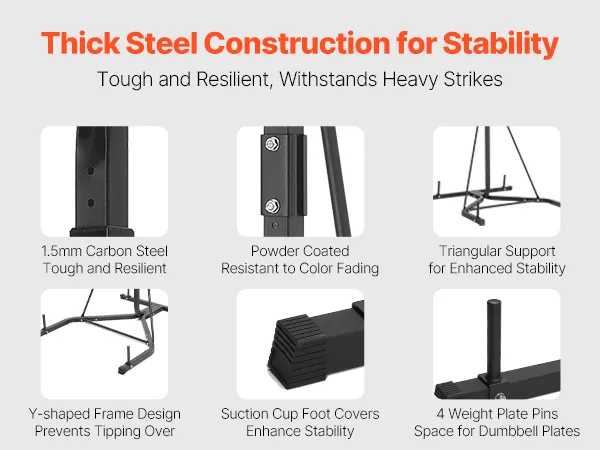 Stable and Secure: 4 weight plates provide even weight distribution for the boxing equipment. Paired with a stable base and suction cup footings, ensuring the stand remains slip-resistant and steady during use, even in the most intense training sessions, maintaining balance