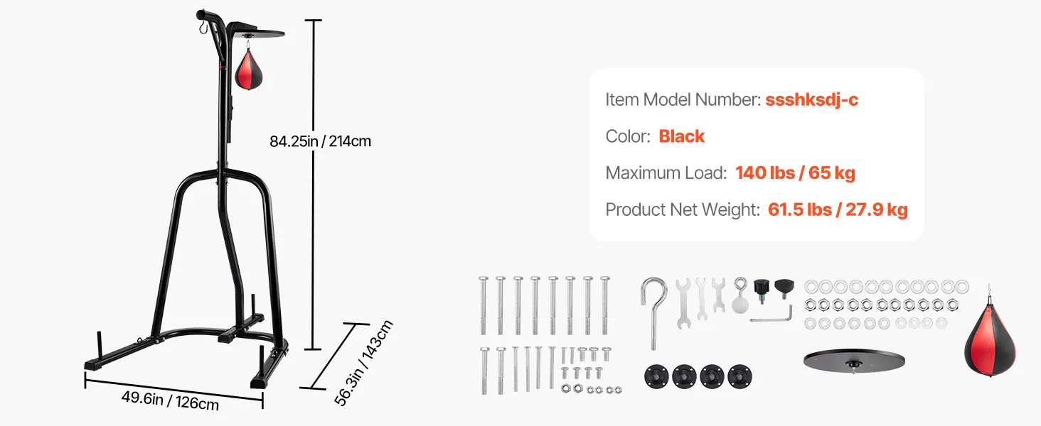 2-in-1 Functionality: Our sandbag rack accommodates both a punching bag and a speed bag. The robust hook can withstand a 140-pound punching bag, suitable for both speed and heavy bag training, making it the ideal companion for your boxing and martial arts workouts (Punching bag not included, sold separately)