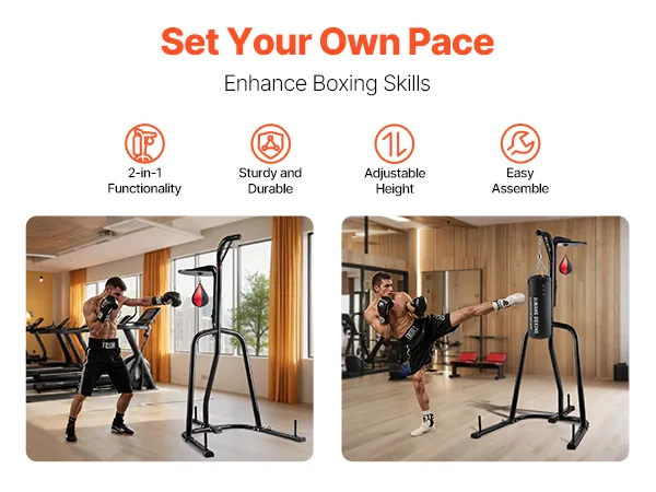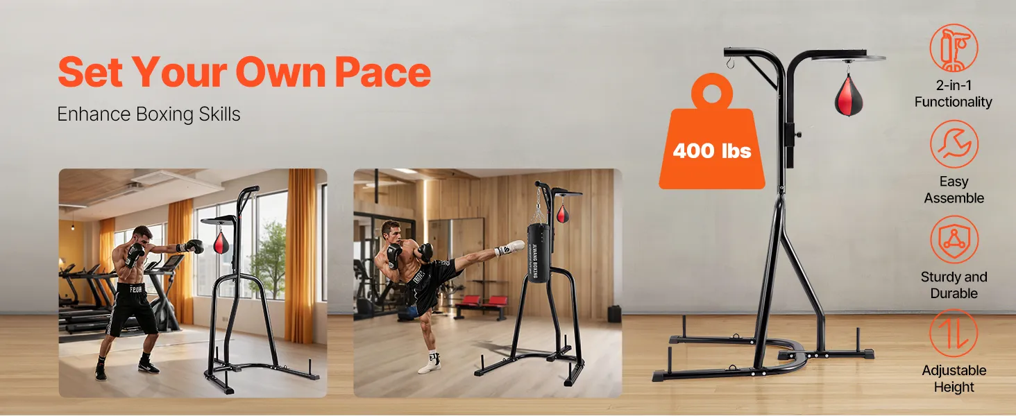VEVOR 2 in 1 Punching Bag Stand, Steel Heavy Duty Workout Equipment, Adjustable Height Boxing Punching Bag and Speed Bag Stand, Freestanding Sandbag Rack, Holds Up to 140 lbs, for Home Gym Fitness