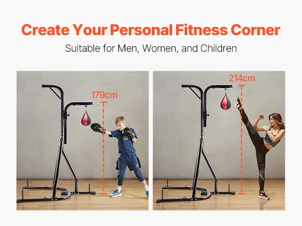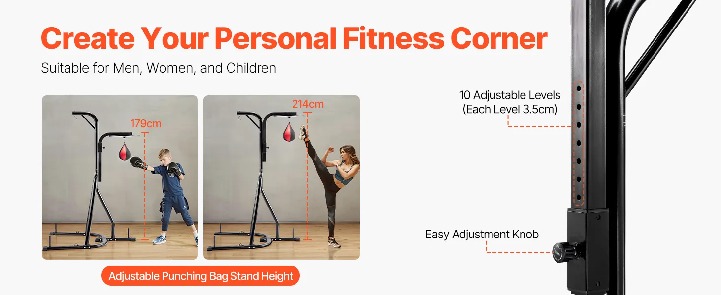 Adjustable Height: The height of the punching bag stand can be adjusted according to your training needs, with a total of 10 fixed hole positions. The height can be adjusted from 179cm to 214cm, catering not only to adults but also making it the perfect fitness equipment for teenagers in your household