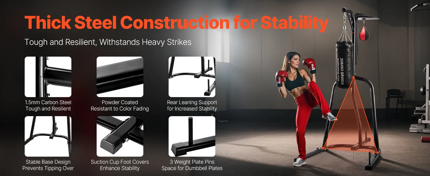 Stable and Secure: 2 weight plates provide even weight distribution for the boxing equipment. Paired with a stable base and suction cup footings, ensuring the stand remains slip-resistant and steady during use, even in the most intense training sessions, maintaining balance