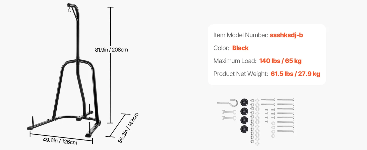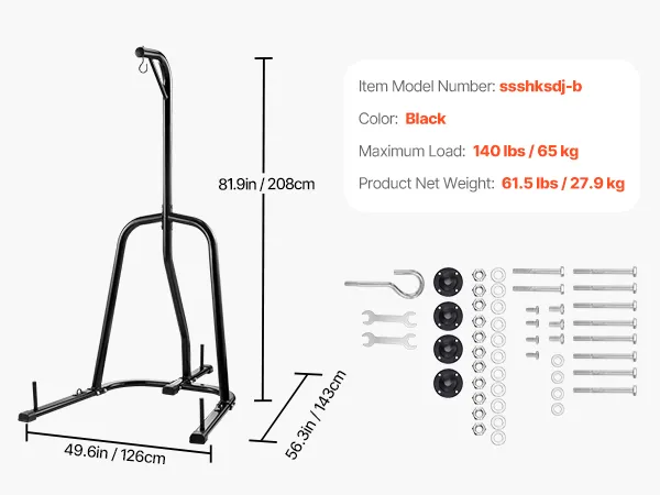 VEVOR Punching Bag Stand, Steel Heavy Duty Workout Equipment, Boxing Punching Bag Stand, Holds Up to 140 lbs, Freestanding Sandbag Rack with Weighted Base, Training Equipment for Home Gym Fitness
