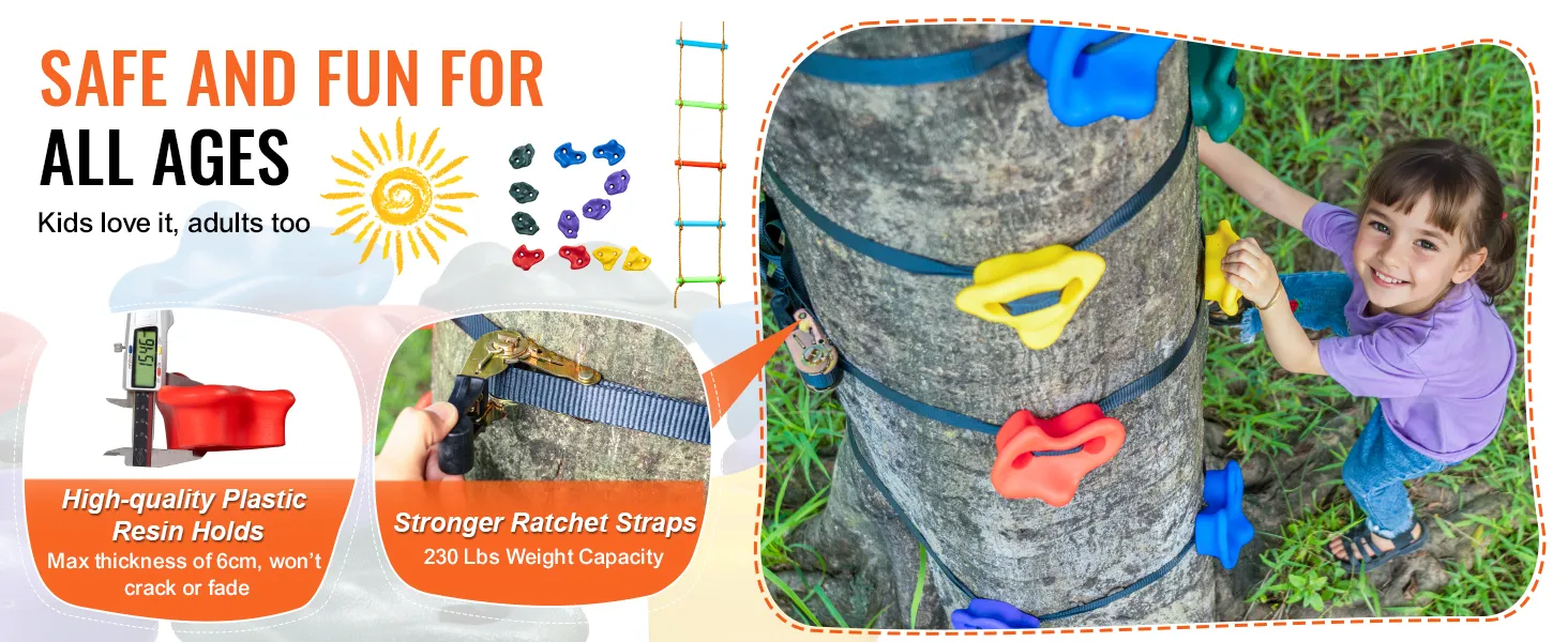 The rock climbing holds for trees provide a safe and exciting climbing experience for your little adventurers. They are sturdy enough to support up to 230 lbs, ensuring your child's safety while they play.