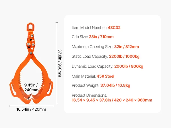 Flexible Grip: The 32-inch log tongs feature an adjustable opening from 28 to 32 inches, providing a secure grip for various object sizes. This flexibility enhances efficiency and ensures stability during operation.