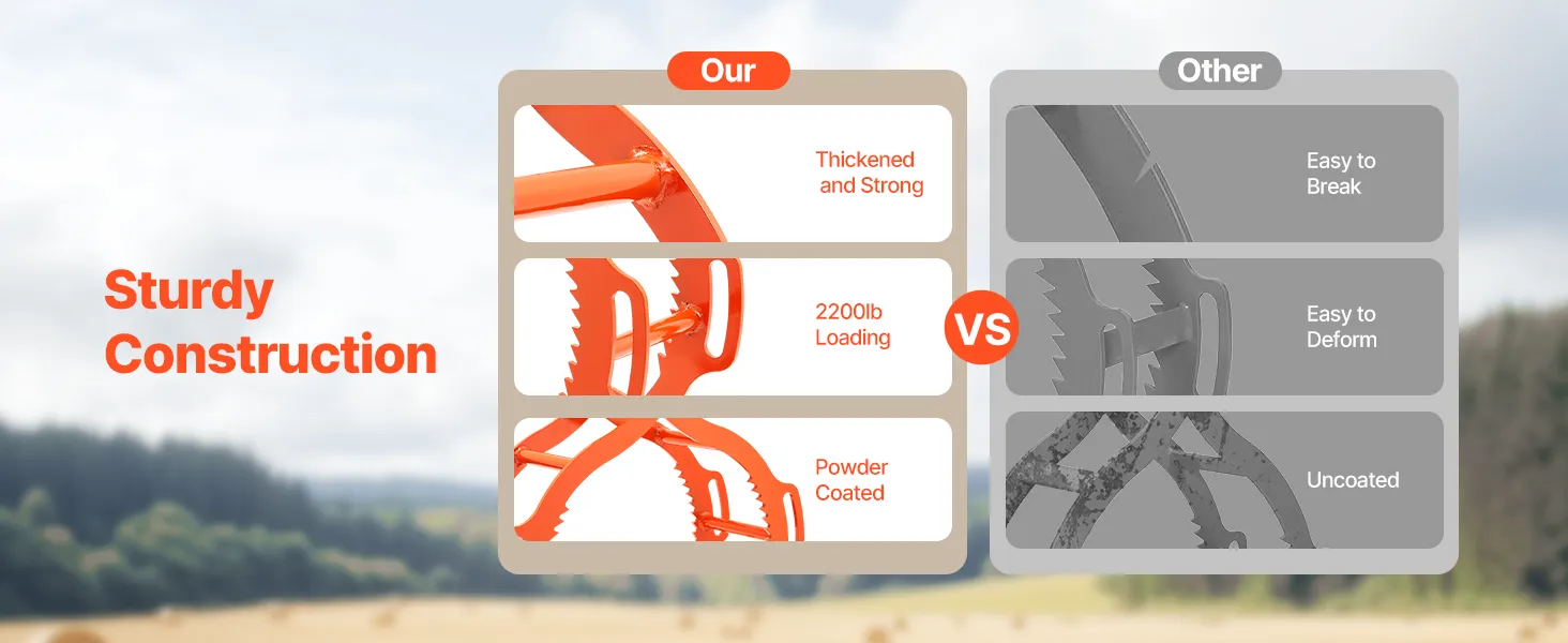 Durable Construction: Crafted from high-hardness forged steel with a rust-resistant powder coating, these log skidding tongs are built to withstand harsh environments, ensuring longevity and reducing maintenance or replacement needs.