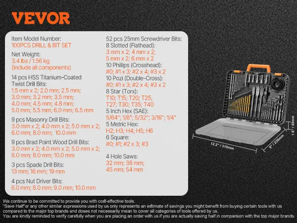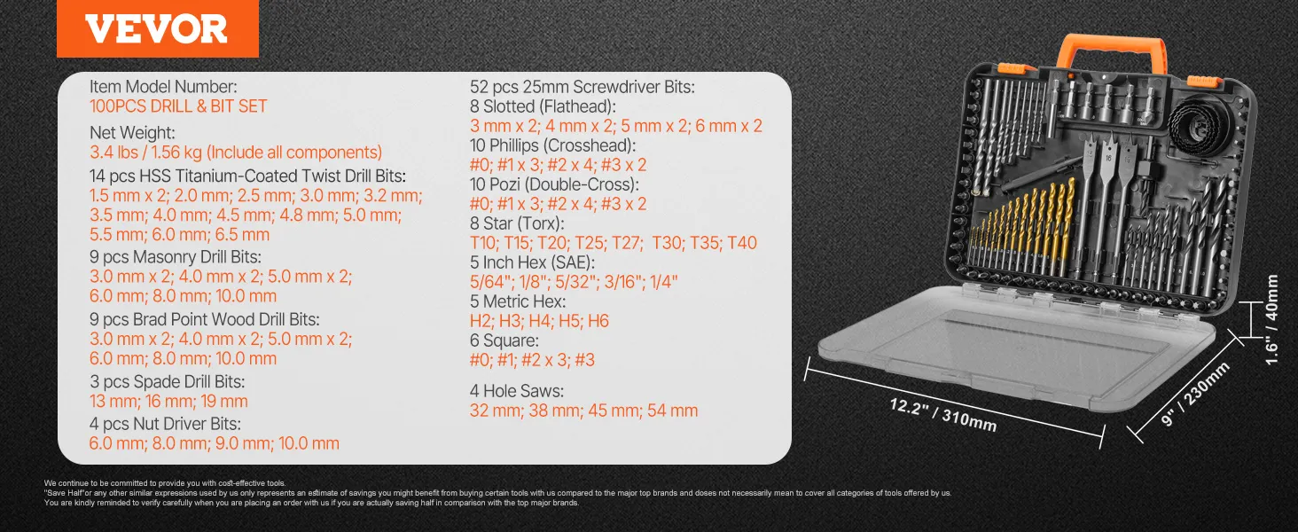 VEVOR 100-delige schroevendraaier- en boorset, efficiënt en compleet