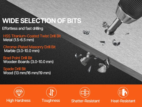 Hoge kwaliteit boren: onze borenset is gemaakt van hoogwaardig HSS- of koolstofstaal met precisiecoating en biedt uitstekende sterkte en scherpte. Het dringt gemakkelijk door metaal, plastic, metselwerk en hout en biedt langdurige prestaties zonder slijtage of breuk.