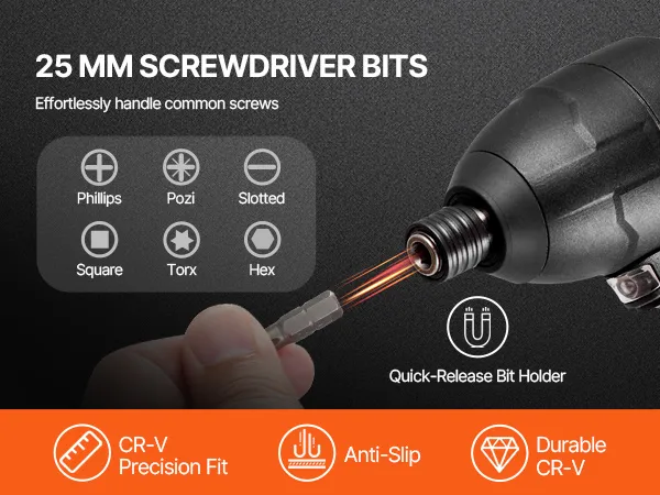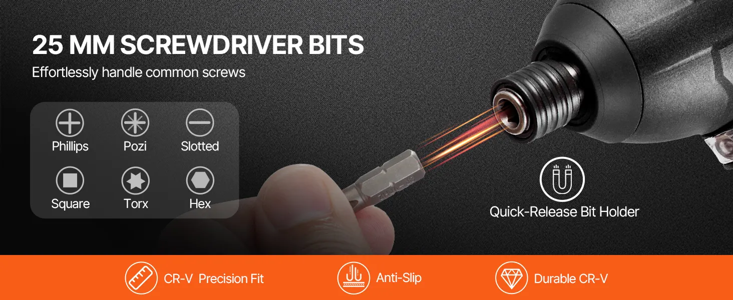Duurzame CR-V-bits: de schroevendraaierbitset is gemaakt van verbeterd CR-V-materiaal voor betere stevigheid en duurzaamheid. Met 56 specificaties zorgt het voor een stevige grip op schroeven zonder te verschuiven, waardoor het bevestigen en losmaken van onderdelen eenvoudig en moeiteloos wordt.