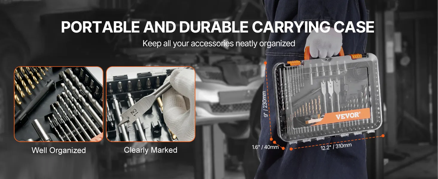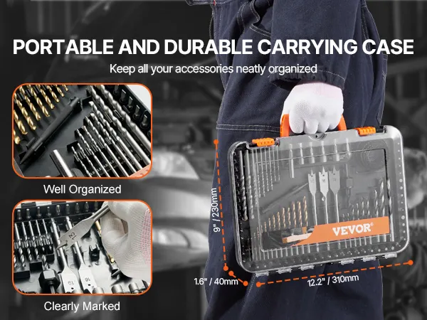 VEVOR boorset, 100-delig, schroevendraaierbitset, schroevendraaierbitset geschikt voor boren en schroeven in hout, metaal en cement, boorsets combinatieset gesorteerd in een overzichtelijke draagtas