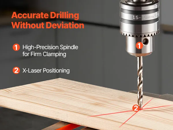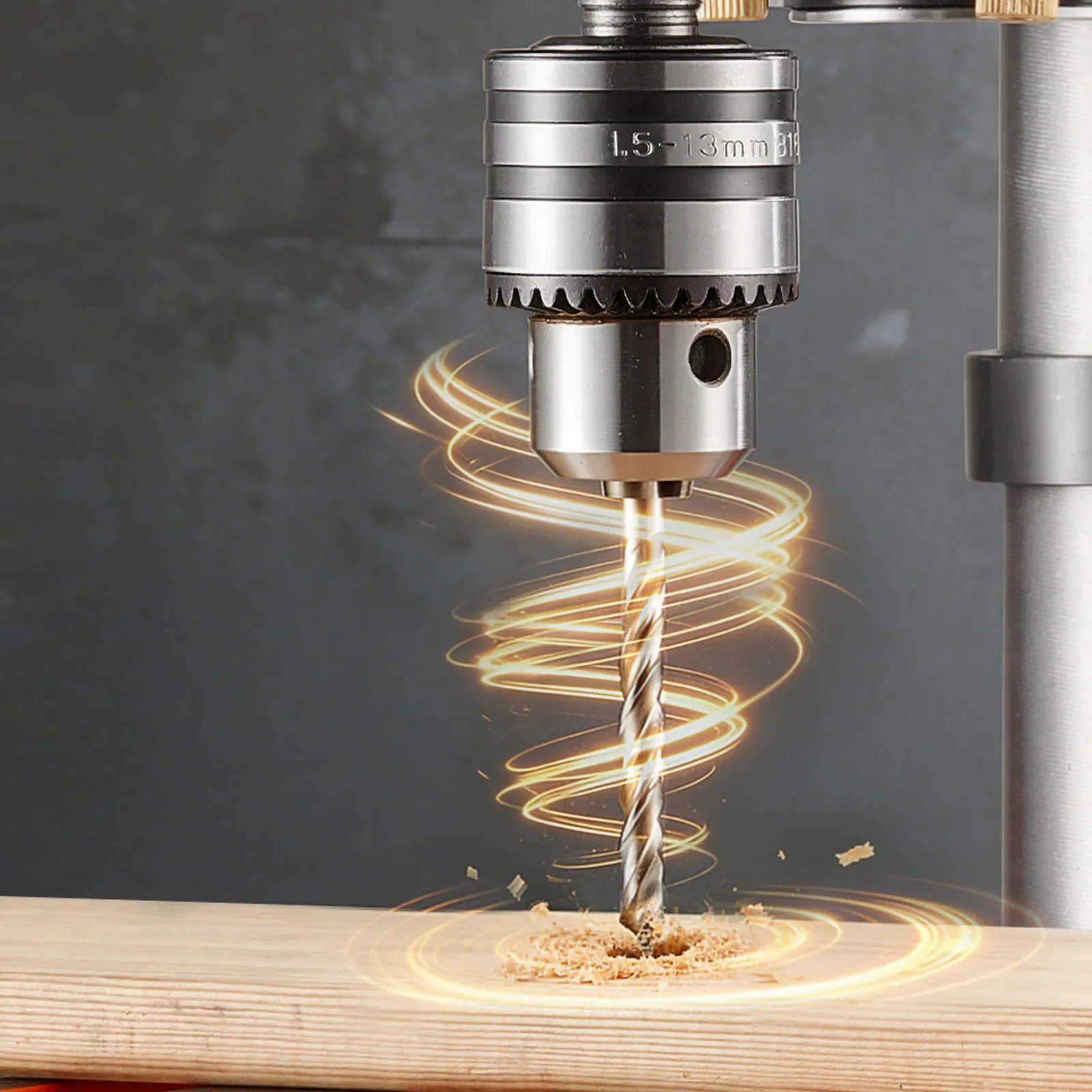 Zeer nauwkeurige spindel: Deze boormachine is ontworpen voor stabiliteit en is voorzien van een zeer nauwkeurige spindel die zorgt voor een stevige grip en precies boren.