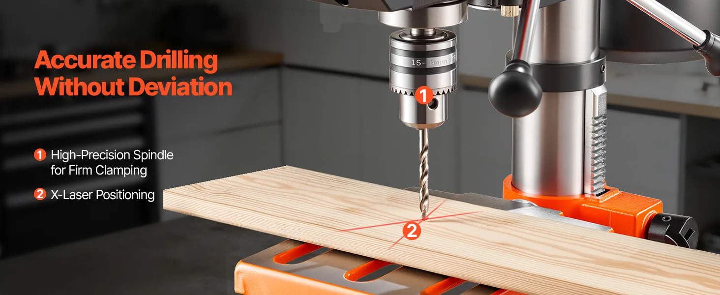 Dankzij X-Laser-positionering vermindert onze tafelboormachine boorfouten en materiaalverspilling.