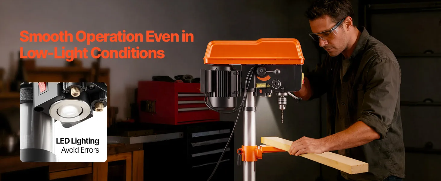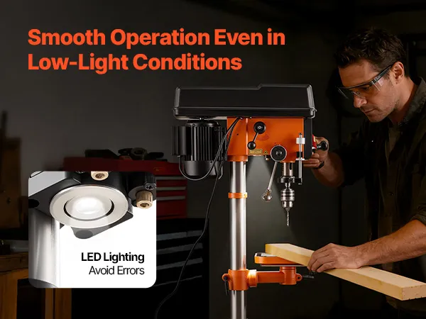 Onze kolomboormachine is uitgerust met een ingebouwde ledlamp die zorgt voor goed zicht, zelfs bij weinig licht, waardoor soepel gewerkt kan worden en fouten worden verminderd.
